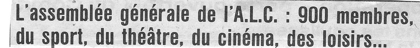 "Notre section ne ressemble pas aux autres... Nous n'avons qu'une seule équipe... Pas question de descente mais de montée... sur les planches. Nous avons choisi de faire rire et notre but est d'apporter la détente aux spectateurs Si l'avenir de la section est en partie compromis faute d'un recrutement insuffisant nous sommes encore bien vivants et samedi prochain, le théâtre de l'A L C remontera sur les planches pour jouer "Je veux voir Mioussov". Nous sommes restés fidèle à cet auteur russe dont nous avons déjà joué l'an passé " L'invitation au château"